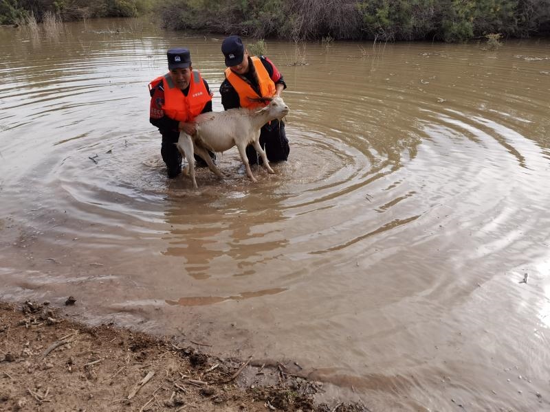 “請民警同志幫幫忙,我的羊群被困在河里了,這可是我的命根子啊!”2020年9月8日8時許,蘇泊淖爾邊境派出所一個報警電話打破了清晨的寧靜,來電的是內(nèi)蒙古額濟(jì)納旗蘇泊淖爾蘇木牧民布某。原來,夜里黑河漲水,他家的幾十只羊被困,望著身陷險境的羊群,焦急的布某打通了派出所的報警電話。