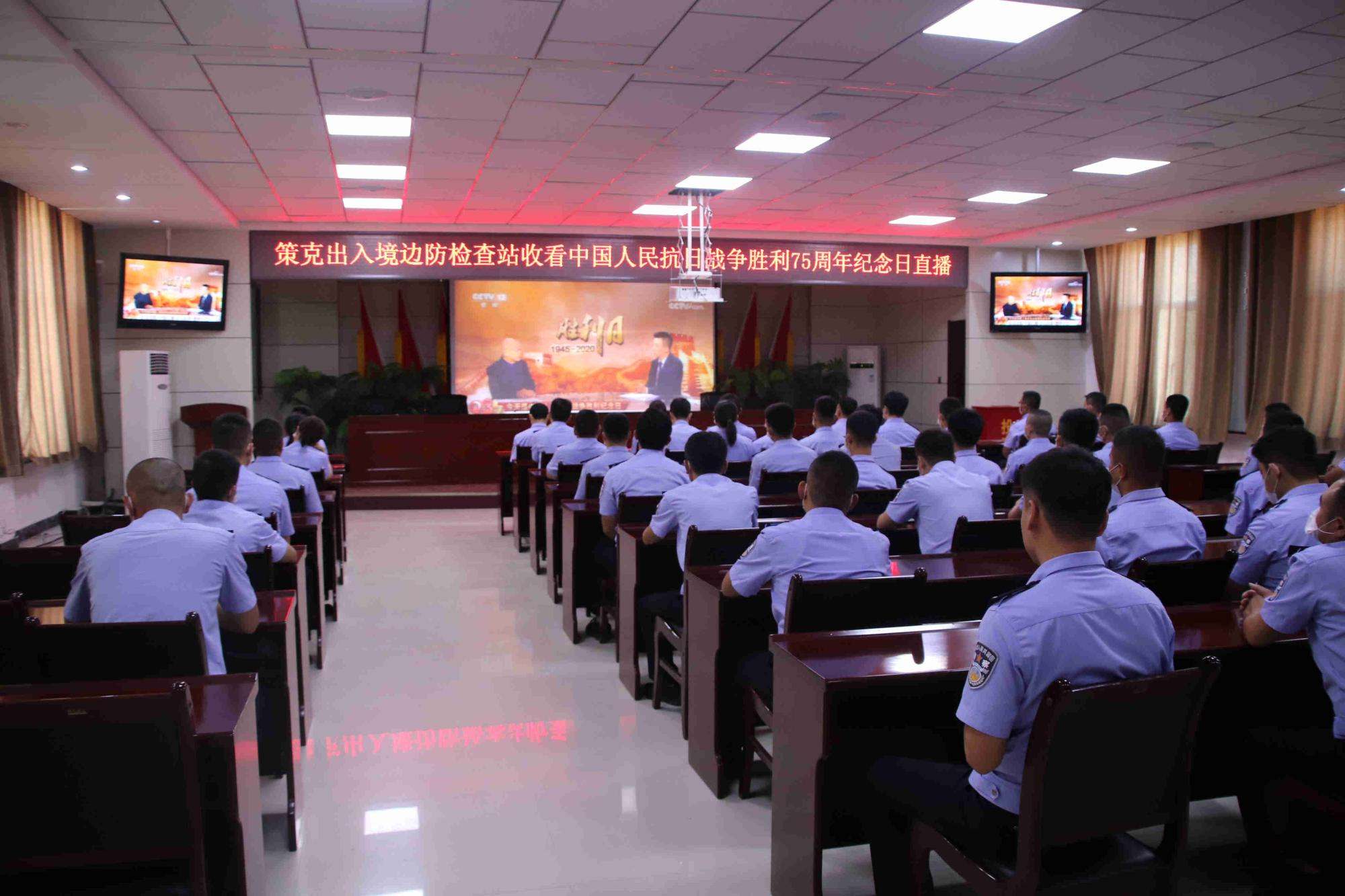 9月3日,策克出入境邊防檢查站組織全站民警收看中國(guó)人民抗日戰(zhàn)爭(zhēng)勝利75周年紀(jì)念日直播。