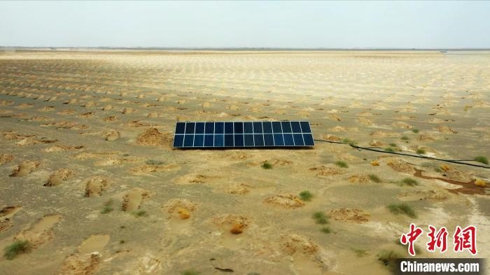 王建剛還利用額濟(jì)納旗日照強(qiáng)、時間長的優(yōu)勢,采用光伏發(fā)電滴灌技術(shù),在戈壁灘種植和養(yǎng)護(hù)梭梭樹。