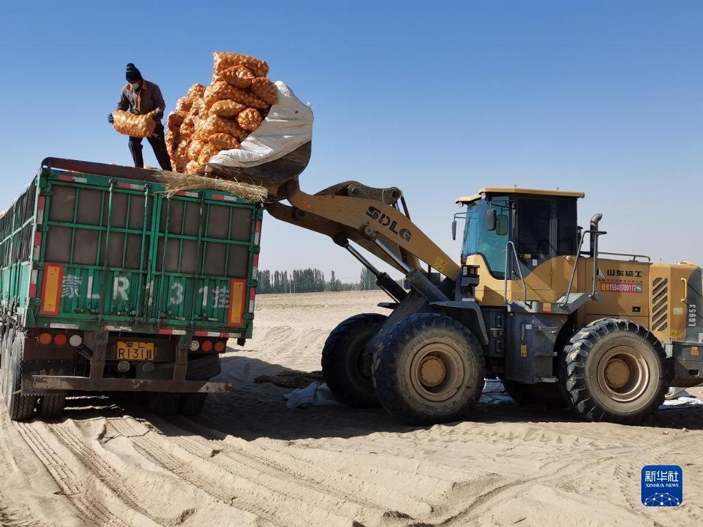 種植大戶正在裝載沙漠土豆。(新華社記者李云平 攝)