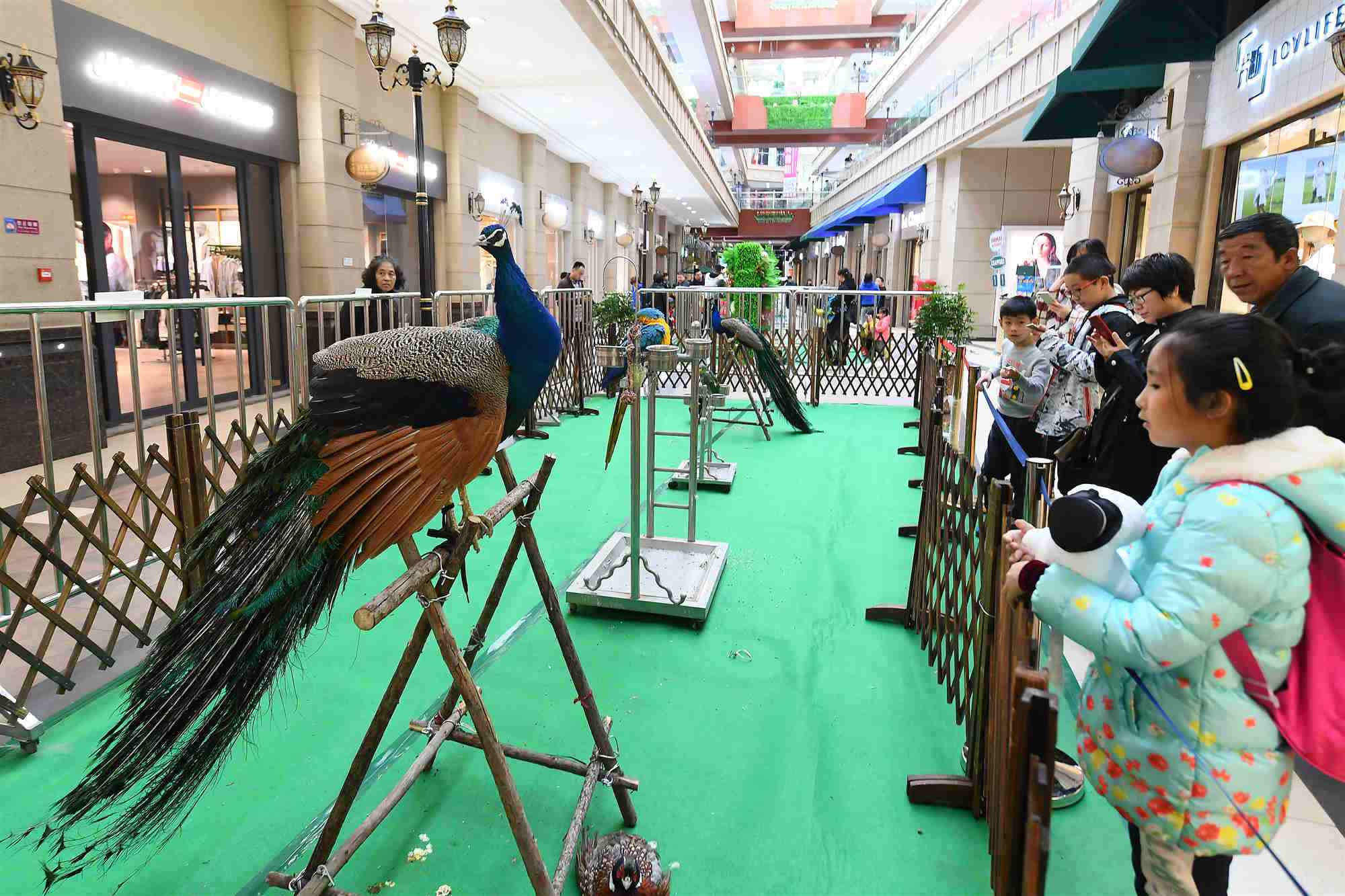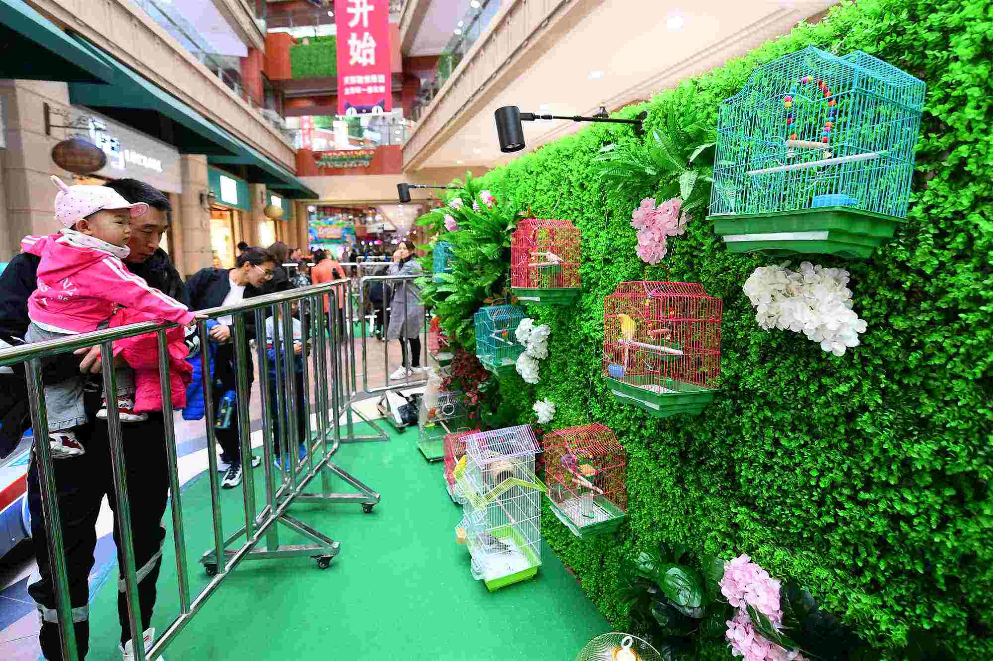 3月30日,在呼和浩特市鵬欣金游城,市民觀看百種鳥類。當日,“呼市首屆珍稀百鳥奇幻展”展出,來自全球的百種珍奇鳥類與市民近距離接觸。展期將從3月30日持續(xù)至4月7日。(內蒙古日報社融媒體記者 金泉攝)