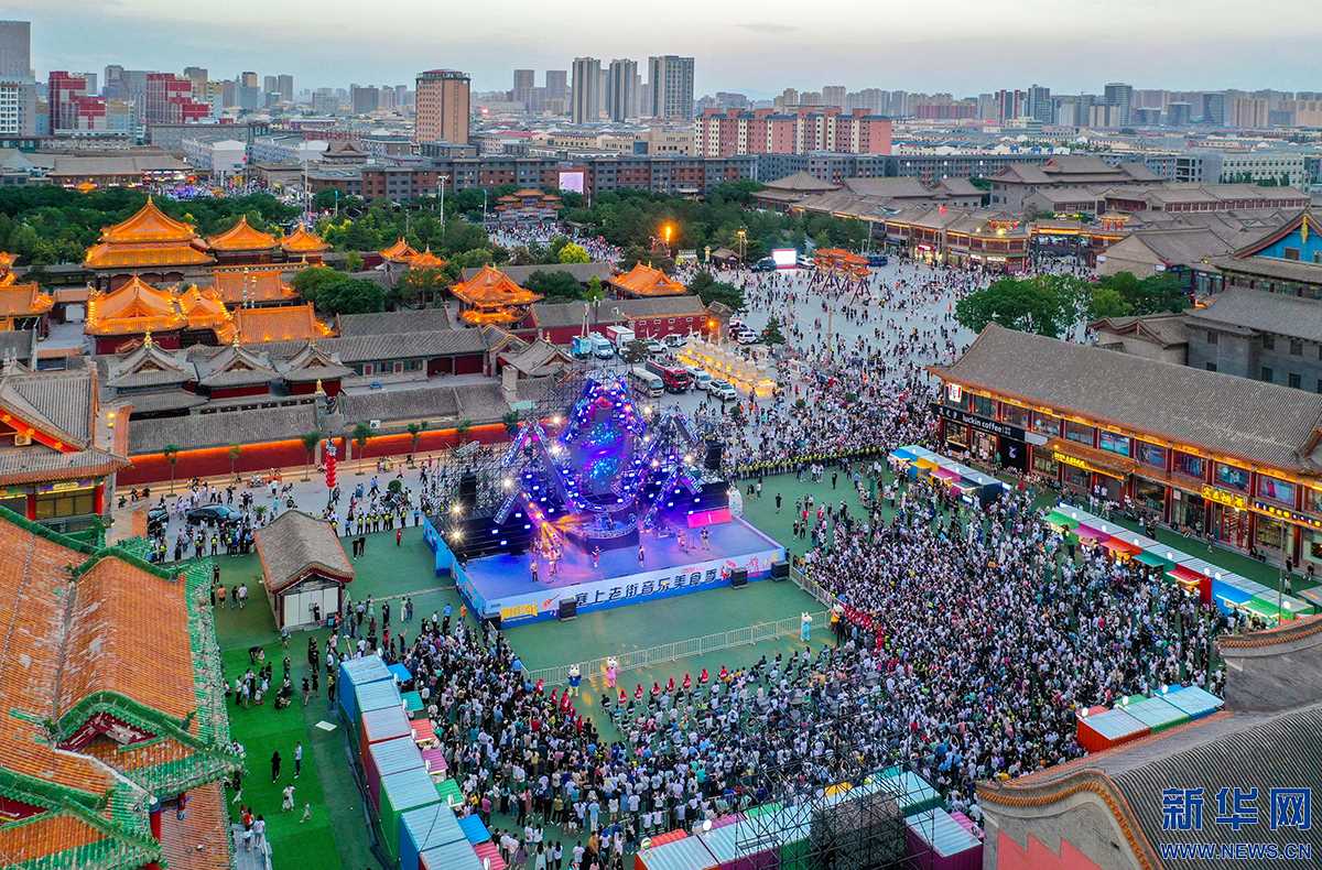 6月18日晚,2022年呼和浩特市“塞上老街音樂(lè)美食季”開幕式現(xiàn)場(chǎng)。新華網(wǎng)發(fā)(丁根厚攝)