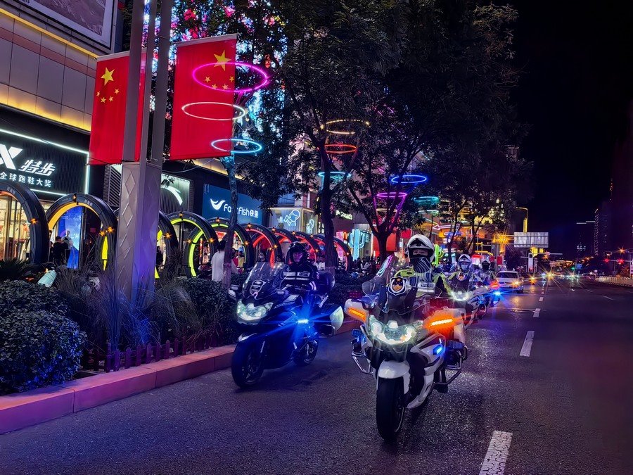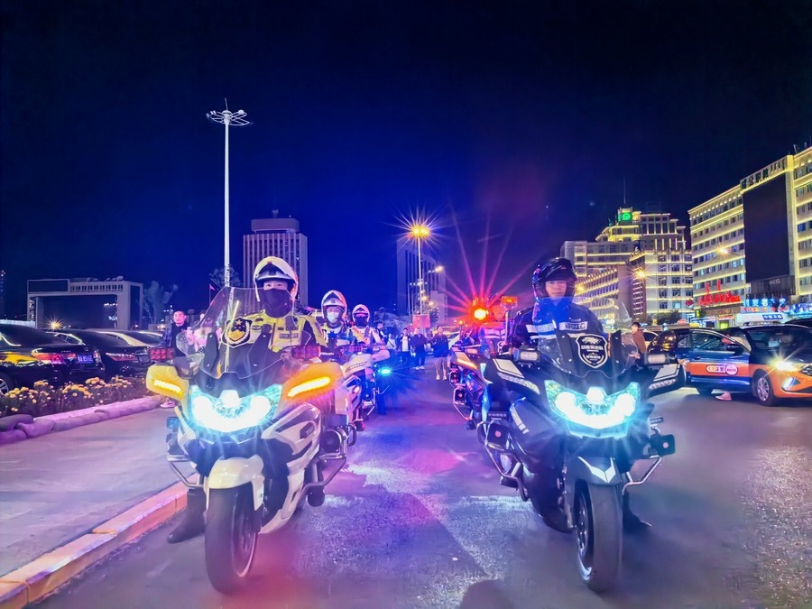 中秋、國慶兩節(jié)期間,呼和浩特市公安局反恐怖和特巡警支隊(duì)?wèi)?zhàn)鷹突擊隊(duì)與交警支隊(duì)停放管理大隊(duì)鐵騎中隊(duì),聯(lián)合開展巡邏防控工作,并組成了一支騎警處突機(jī)動隊(duì),成了呼和浩特大街小巷一道亮麗的風(fēng)景線。圖為中秋節(jié)之夜,這支機(jī)動隊(duì)開展聯(lián)合巡邏,守護(hù)青城百姓平安過節(jié)。 王鑫 攝影報(bào)道