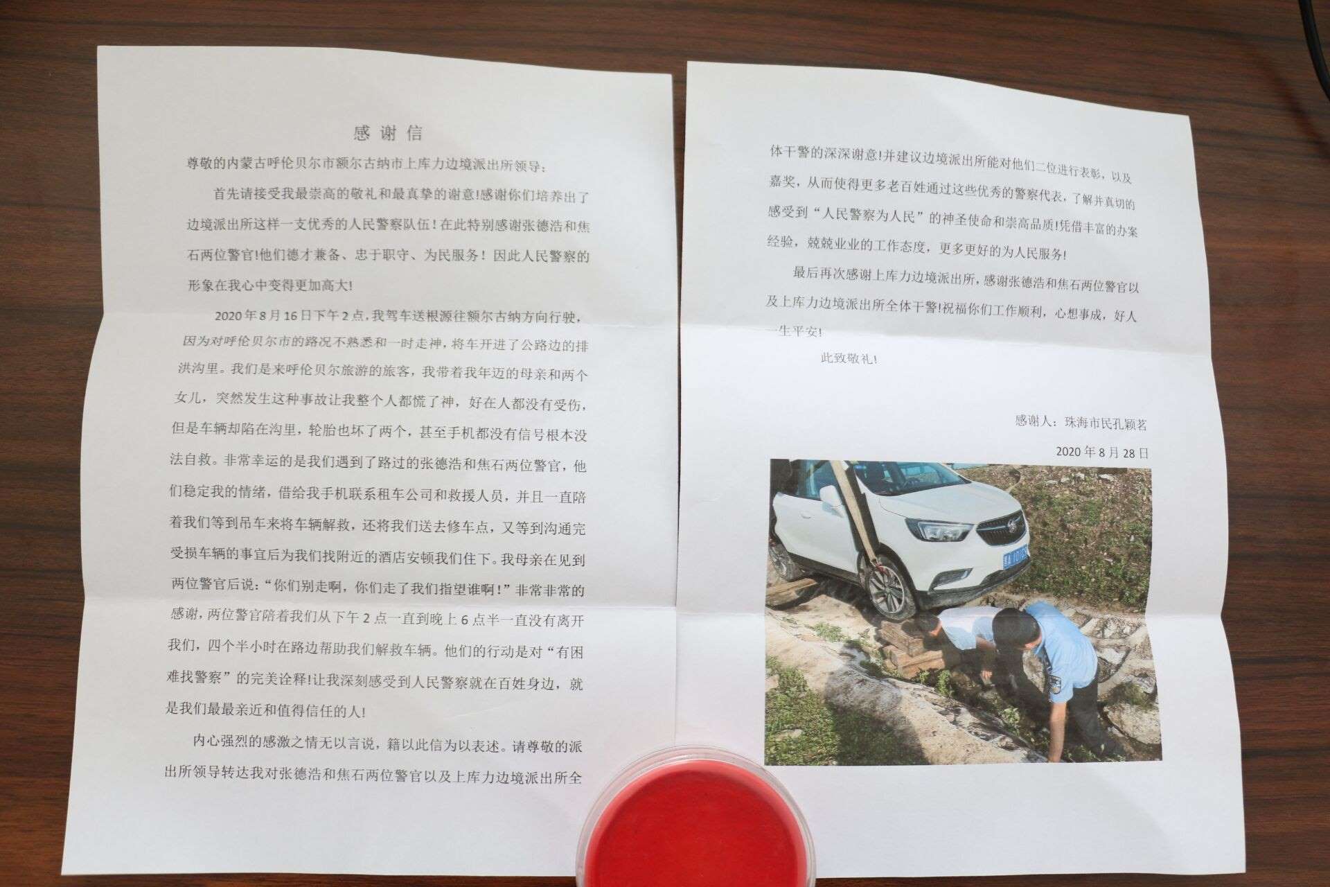 9月2日,印有“盡職盡責熱心為民,失而復得溫暖人心”的錦旗從北京郵寄到室韋邊境派出所;9月2日,一面印有“情系百姓,為民解憂”的錦旗被群眾送到恩和邊境派出所民警手中;9月3日,印有“人民衛(wèi)士,一心為民”的錦旗送到莫爾道嘎邊境派出所民警手中;9月4日,上庫力邊境派出所收到了從廣東珠江郵來了印有“人民警察為人民,服務群眾解民憂”的錦旗和一封感謝信...