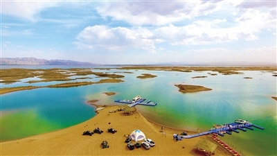 沙與水相交的烏海湖。 孟和朝魯 攝