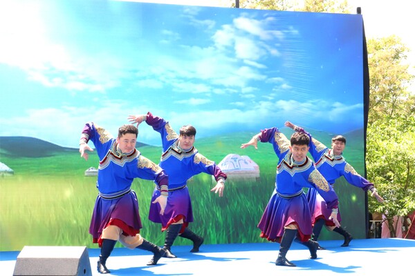 緊接著,興安盟烏蘭牧騎隊員手中的馬頭琴悠然奏響,旋律如潺潺溪流,流淌在每一個人的心田。身著盛裝的《草原歡歌》舞者在舞臺上盡情翻飛旋轉(zhuǎn),她們的舞姿輕盈靈動,仿佛將首都市民帶入了廣袤無垠的科爾沁草原,讓人們在京城之中也能感受到草原的遼闊與奔放?! ?/p>