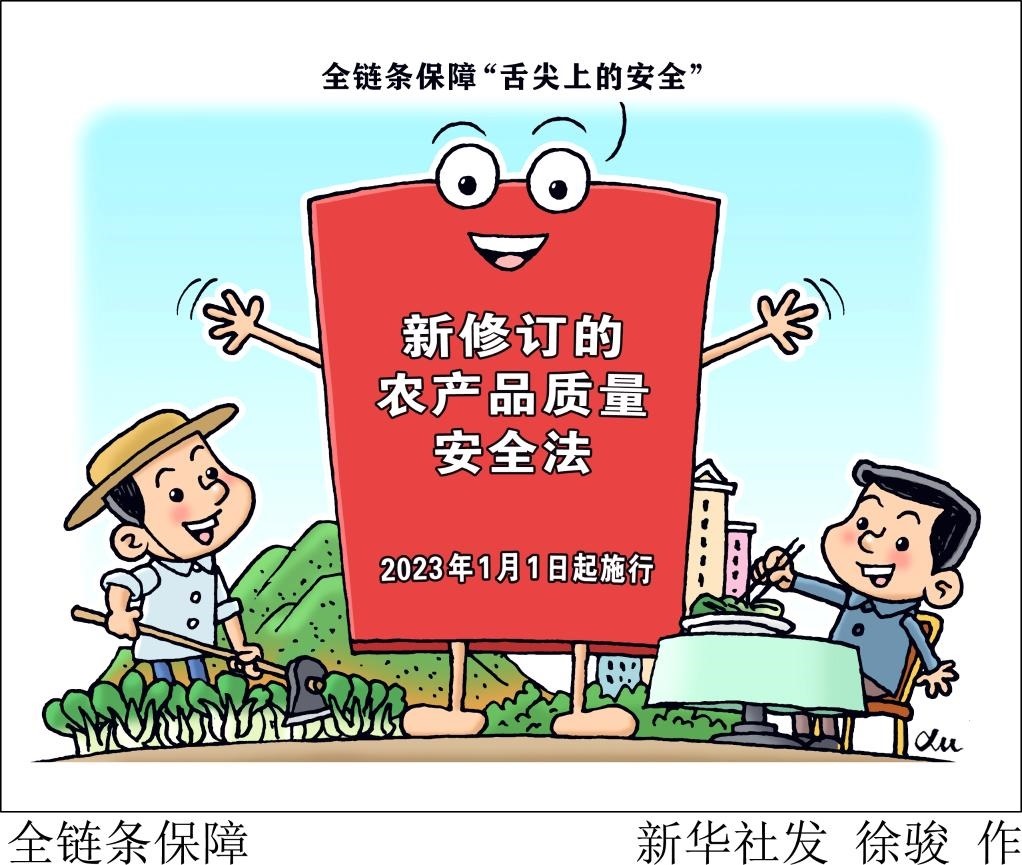 新版農(nóng)產(chǎn)品質(zhì)量安全法自1月1日起施行,實施農(nóng)產(chǎn)品質(zhì)量安全承諾達標合格證制度,與食品安全法銜接,實現(xiàn)從田間地頭到百姓餐桌的全過程、全鏈條監(jiān)管。