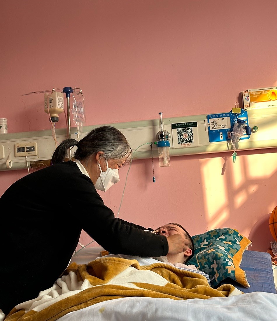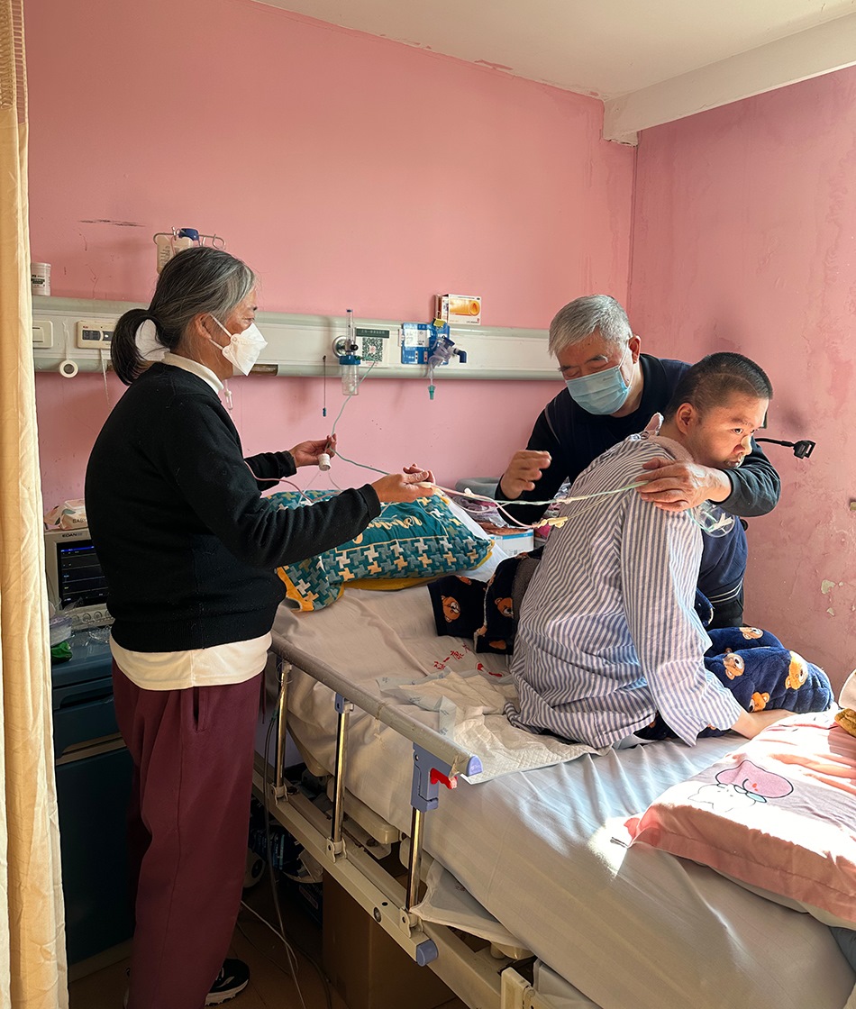 一月上旬的一個下午,鄭建英像過去一千多個日子一樣,坐在兒子床尾的椅子上,盯著他床頭監(jiān)視器的氧保。這幾年,她已經形成條件反射,當數值低于92時,她會從椅子上彈起來幫他吸痰。