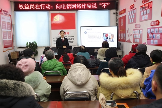 吉林省吉林市船營區(qū)人民法院在向陽街道北安社區(qū)開展“向電信網(wǎng)絡(luò)詐騙說‘不’”普法講座。本版圖片均由受訪者提供