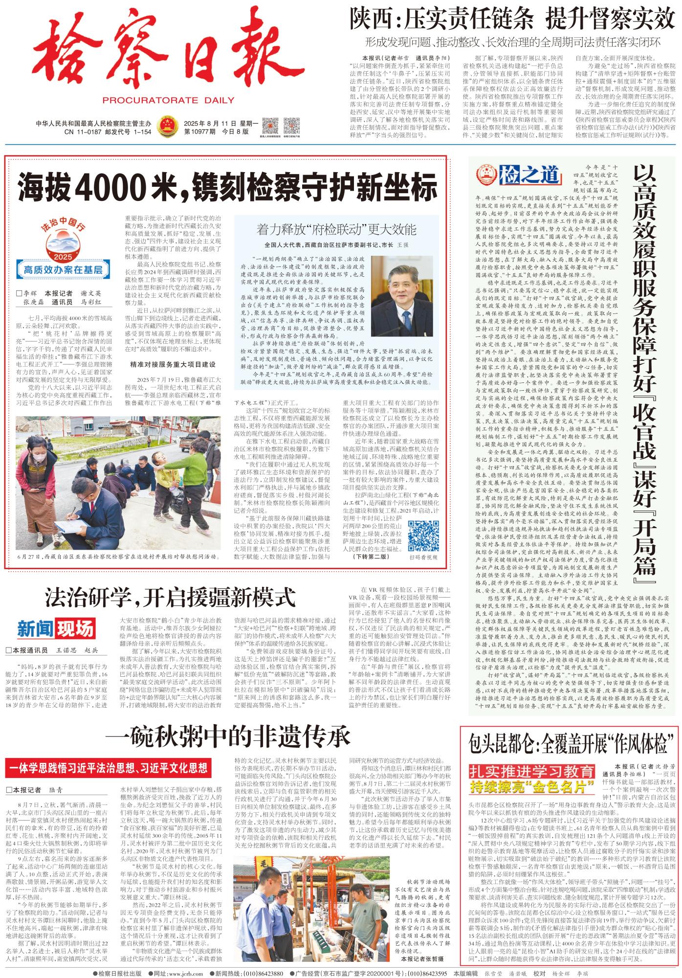 2025年8月11日,《檢察日報》第1版刊發(fā)題為《包頭昆都侖:全覆蓋開展“作風體檢”》的文章,報道了內(nèi)蒙古自治區(qū)包頭市昆都侖區(qū)檢察院召開了一場“用身邊事教育身邊人”警示教育大會。這是該院今年以來以抓鐵有痕的勁頭推進作風建設的生動縮影。