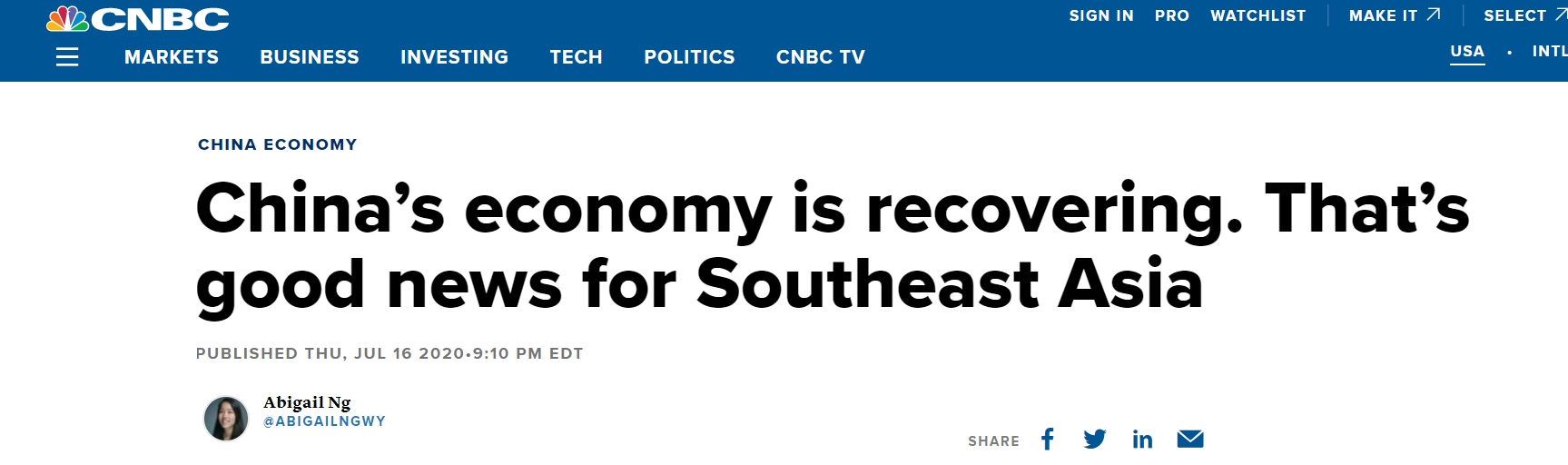 美國消費者新聞與商業(yè)頻道(CNBC)17日發(fā)表文章,題為《中國經濟正在復蘇,這對東南亞是個好消息》。文中指出,作為東盟出口商品最多的國家,中國經濟穩(wěn)步增長成為東南亞國家“關鍵資產”?!氨M管還有許多挑戰(zhàn),這一增長重新點燃了中國經濟可以幫助其他國家復蘇的希望”,華僑銀行(OCBC Bank)經濟學家維蘭托(Wellian Wiranto)16日表示。
