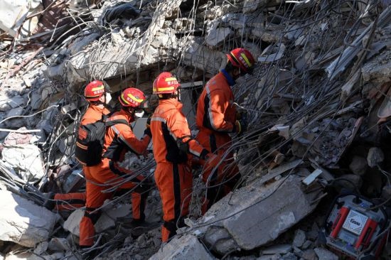 2月14日,中國(guó)救援隊(duì)與中國(guó)香港特區(qū)救援隊(duì)聯(lián)合編組在土耳其哈塔伊省安塔基亞市開(kāi)展救援工作。