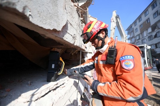 中國(guó)救援隊(duì)自8日到達(dá)當(dāng)?shù)貫?zāi)區(qū)后,按照土方給出的范圍,到地震重災(zāi)區(qū)哈塔伊省執(zhí)行搜救任務(wù)。在搜索中,救援隊(duì)努力搜索生命跡象,不放棄一絲希望。