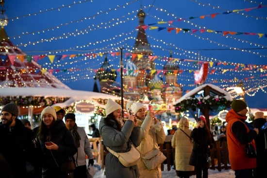 人們在俄羅斯首都莫斯科街頭拍照(2022年12月21日攝)。新華社發(fā)(亞歷山大攝)