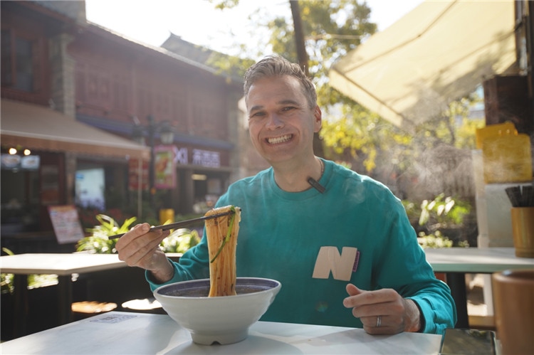杜安睿在云南昆明文廟街品嘗米線(xiàn)。受訪(fǎng)者供圖