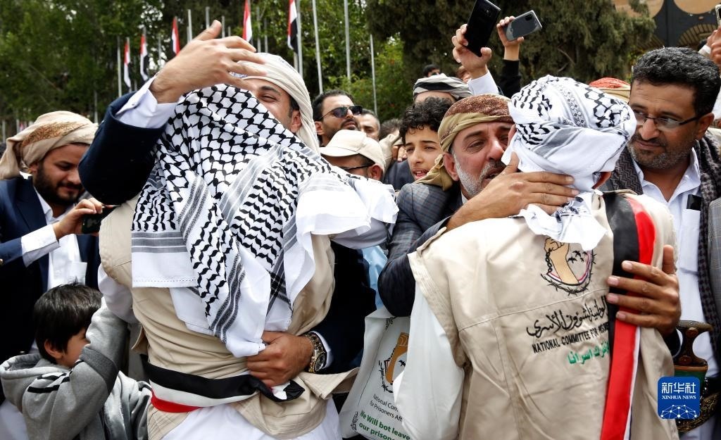 也門政府與胡塞武裝4月14日開始大規(guī)模換俘行動,雙方將釋放共計逾880名戰(zhàn)俘。   新華社發(fā)(穆罕默德·穆罕默德 攝)