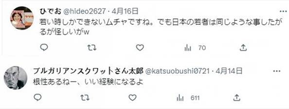 也有一部分日本網(wǎng)友感嘆“年輕真好”。