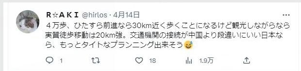 “4萬步,直線距離相當于將近30公里,不過如果是徒步邊走邊逛景點,差不多是20來公里。如果在公共交通更便利的日本,應該能壓縮出一個更緊湊的行程?!?/p>