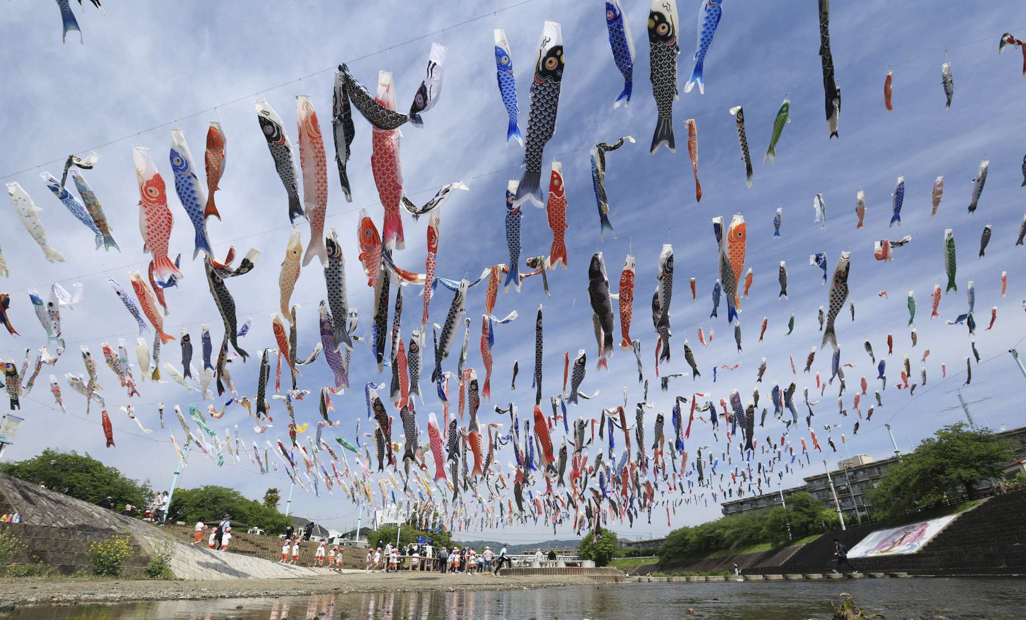 日本大阪鯉魚旗迎風(fēng)飄揚(yáng)