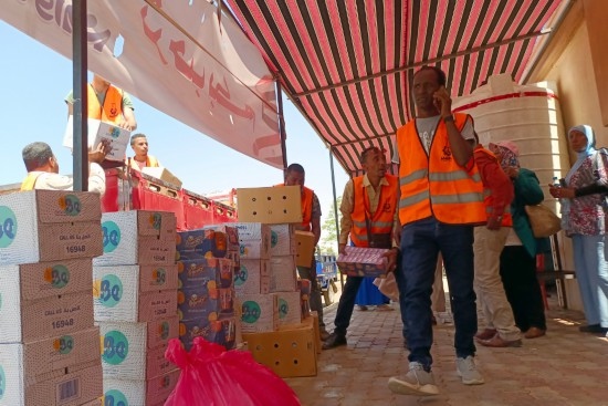 5月2日,在埃及南部阿斯旺省,工作人員為逃離蘇丹進(jìn)入埃及的難民準(zhǔn)備物資(手機(jī)拍攝)。新華社發(fā)(拉德萬(wàn)攝)