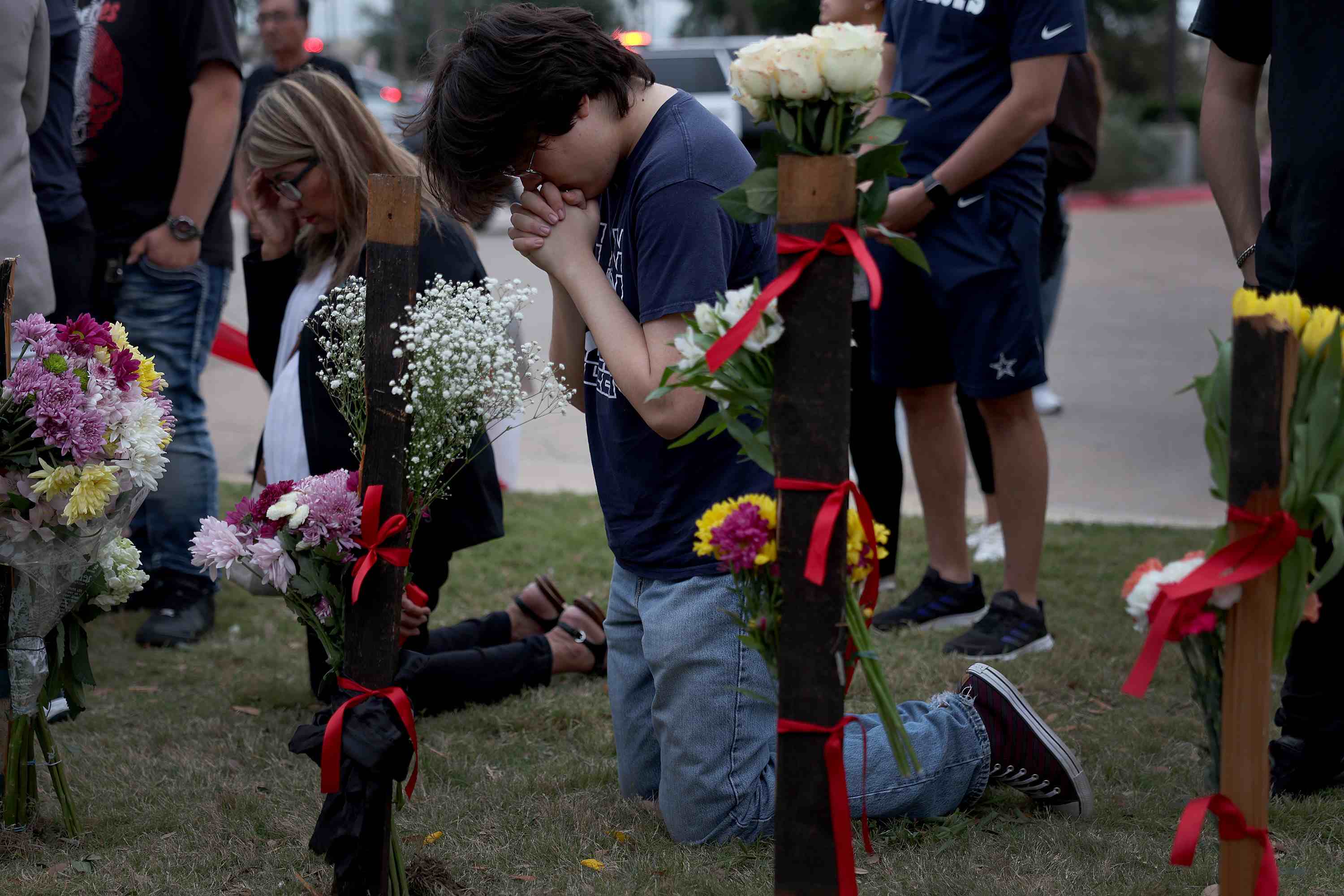當?shù)貢r間2023年5月7日,美國得克薩斯州艾倫市,民眾參加守夜活動哀悼槍擊事件遇難者。美國得克薩斯州一家購物中心6日發(fā)生槍擊事件,造成包括槍手在內(nèi)的9人死亡、7人受傷。 視覺中國