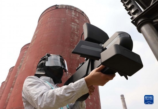 5月12日,工作人員在展示便攜激光夜視取證儀。