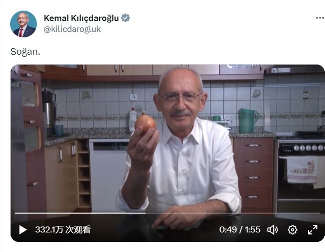 ↑克勒奇達爾奧盧在競選廣告中手持洋蔥