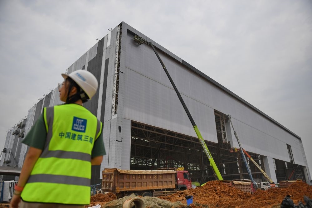 2023年8月15日,在位于四川省成都市雙流區(qū)的空中客車(成都)飛機全生命周期服務(wù)有限公司項目建設(shè)現(xiàn)場,工人在作業(yè)。新華社發(fā)(李向雨 攝)