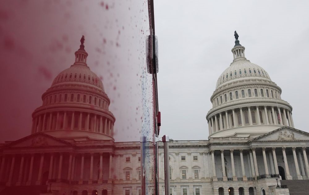 這張2018年12月28日拍攝的資料照片顯示,在美國(guó)華盛頓,國(guó)會(huì)大廈映在一輛汽車(chē)上。新華社記者劉杰攝