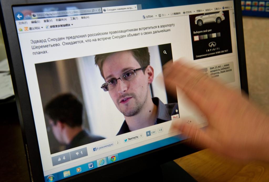 2013年7月12日,新聞工作者在俄羅斯首都莫斯科打開(kāi)網(wǎng)頁(yè)瀏覽斯諾登的訊息。2013年,美國(guó)前防務(wù)承包商雇員愛(ài)德華·斯諾登向媒體曝光美方“棱鏡”大規(guī)模秘密監(jiān)聽(tīng)項(xiàng)目。新華社記者姜克紅 攝