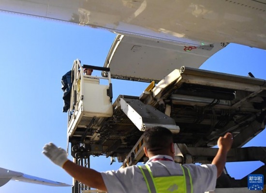 8月1日,工作人員在中國鄭州新鄭國際機(jī)場為一架盧森堡貨航貨機(jī)裝貨。新華社記者 李嘉南 攝