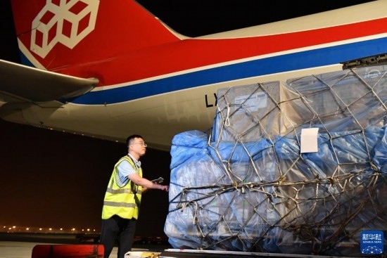 這是2020年3月22日,運(yùn)送防疫物資的鄭州—盧森堡航線貨機(jī)在中國鄭州新鄭國際機(jī)場裝機(jī)準(zhǔn)備起飛的資料照片。新華社記者 李嘉南 攝