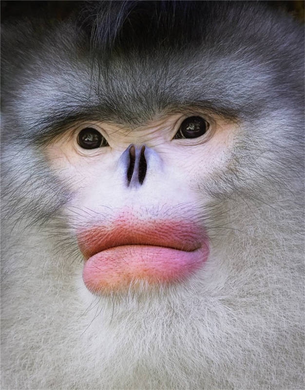 記得我和助手連續(xù)幾天反復(fù)登山,幾周后,我們終于發(fā)現(xiàn)了金絲猴。它們看起來(lái)就像做了整容手術(shù),有著大紅唇等獨(dú)特的特征。有一天,我順著山路,壓根沒在想金絲猴。突然,我發(fā)現(xiàn)在我腳邊,它正直視著我,我轉(zhuǎn)身按動(dòng)快門,抓拍到那張近距離的動(dòng)物肖像。