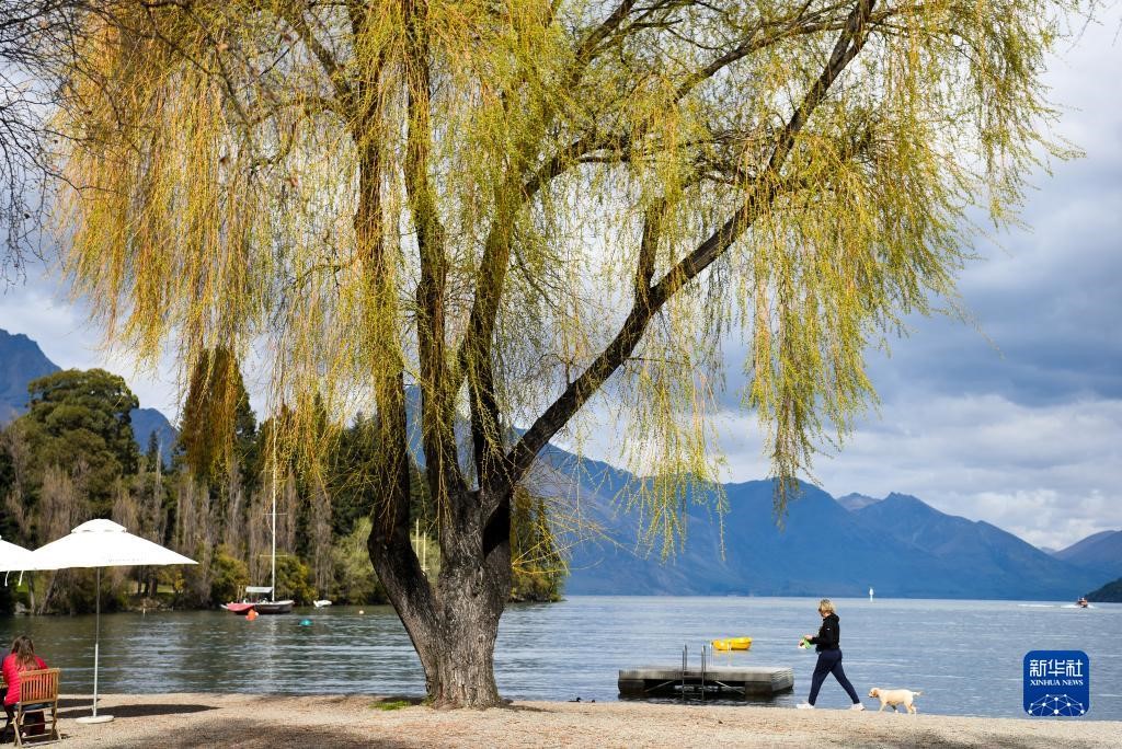 9月28日,一名女子在新西蘭南島昆斯敦的湖邊散步。 新華社記者 郭磊 攝