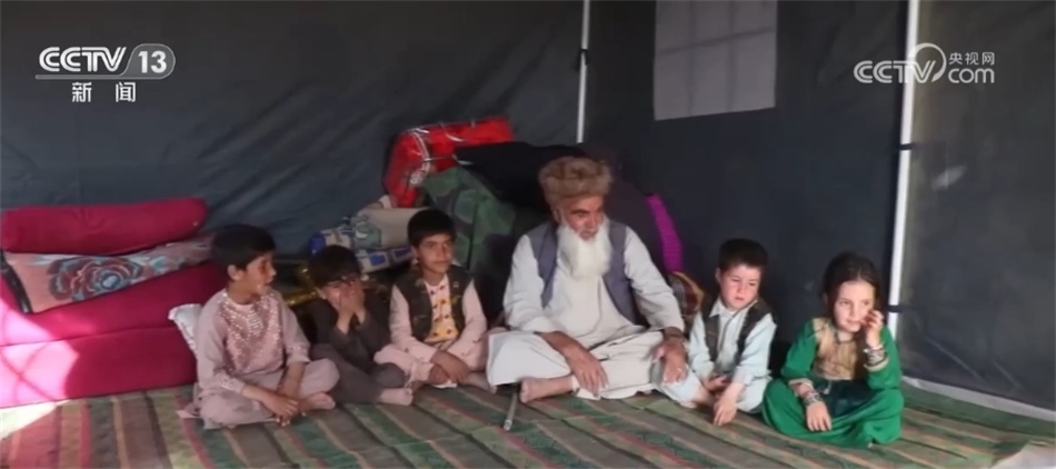 在受地震影響最嚴(yán)重的阿富汗赫拉特省津達(dá)詹區(qū),一頂頂中國援助的藍(lán)色帳篷搭建在廢墟旁的空地上。67歲的謝林和孫子、孫女被安置在其中一間帳篷里,帳篷內(nèi)堆放著毛毯、被褥和一些基本的生活用品。跟大多數(shù)村民一樣,謝林家的土坯房在強(qiáng)震中被夷為平地,他和家人不得不在戶外露宿多天。他說,多虧了這些及時運抵的中國帳篷,他們才有了一個遮風(fēng)擋雨的庇護(hù)所。