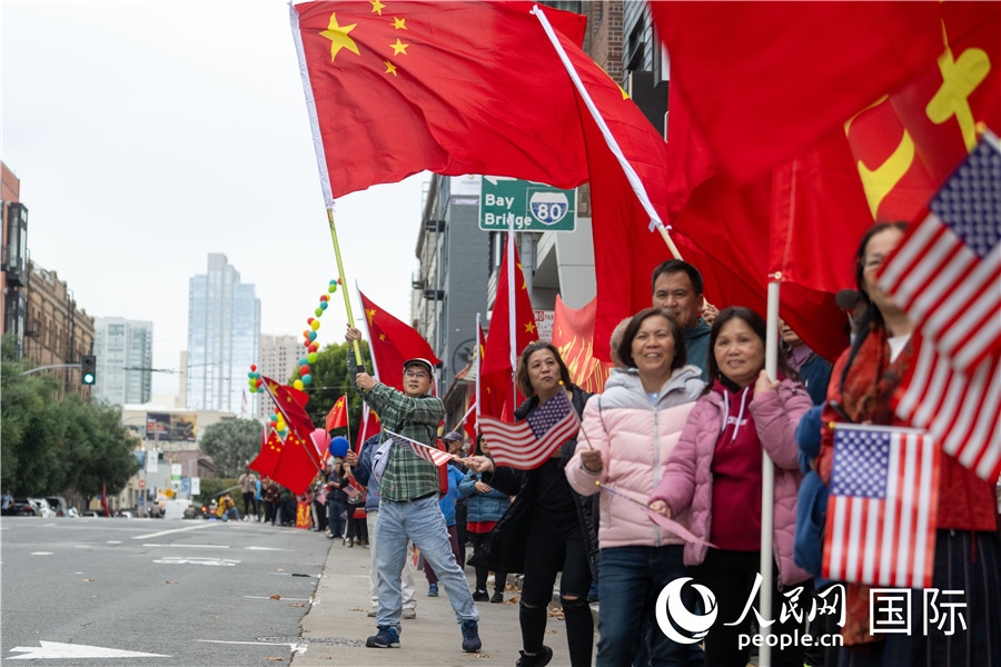 習(xí)近平乘坐的車隊離開機場前往下榻飯店途中,許多華僑華人和中國留學(xué)生代表等候在沿途街道,揮舞中美兩國國旗,熱烈歡迎習(xí)近平主席到訪。