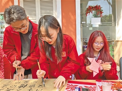 12月8日,在河內(nèi)大學(xué)孔子學(xué)院舉行的文化體驗(yàn)活動(dòng)中,越南大學(xué)生體驗(yàn)中國書法和剪紙。本報(bào)記者 張遠(yuǎn)南攝