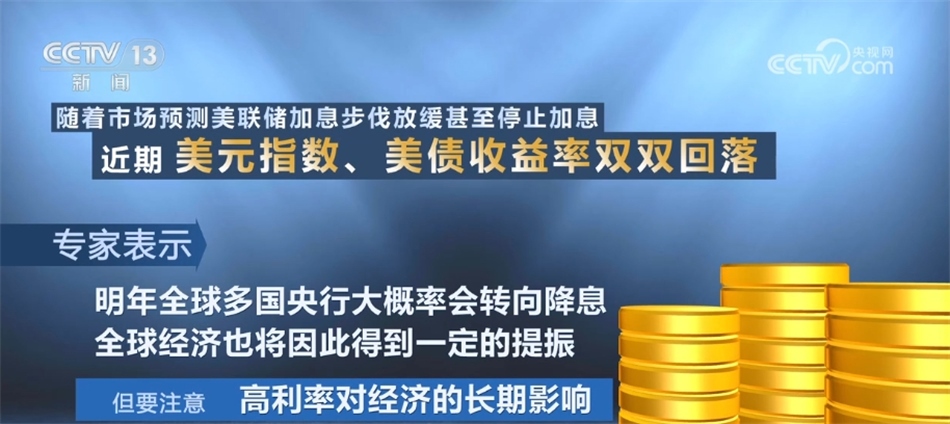 隨著市場預(yù)測美聯(lián)儲加息步伐放緩甚至停止加息,近期,美元指數(shù)、美債收益率雙雙回落,專家表示,明年全球多國央行大概率會轉(zhuǎn)向降息,全球經(jīng)濟(jì)也將因此得到一定的提振。但是,要注意的是,高利率對經(jīng)濟(jì)的長期影響。在國際貨幣基金組織(IMF)此前發(fā)布的《世界經(jīng)濟(jì)展望》中預(yù)計,2024年全球經(jīng)濟(jì)增速為2.9%,較2023年有所下降。