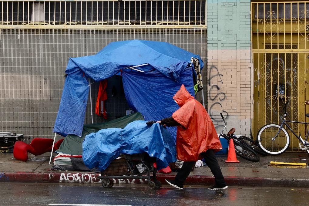 這是2023年1月10日在美國(guó)洛杉磯市中心拍攝的無(wú)家可歸者的帳篷。新華社發(fā)(曾慧攝)