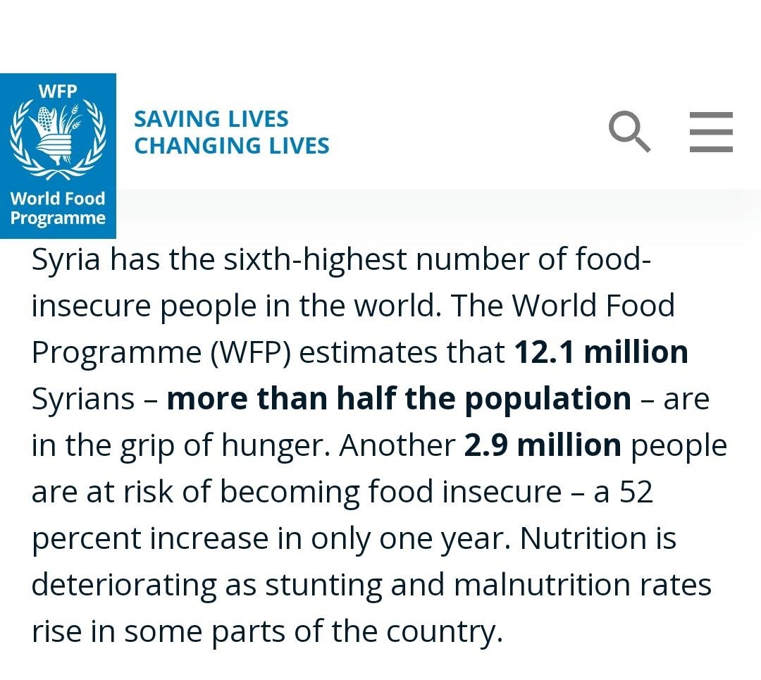 世界糧食計(jì)劃署稱超過一半敘利亞的人口在饑餓邊緣