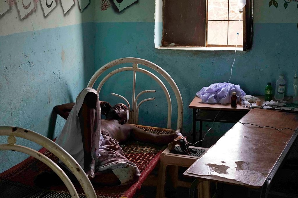 當(dāng)?shù)貢r(shí)間2023年6月6日,蘇丹恩圖曼,一名受傷的蘇丹男子躺在床上。當(dāng)日,首都喀土穆爆發(fā)了激烈的戰(zhàn)斗。