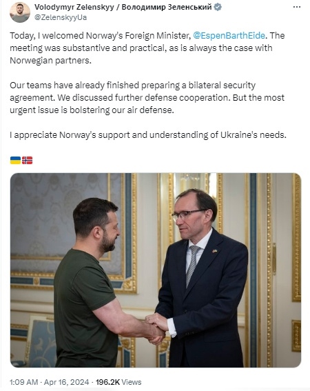 據(jù)報(bào)道,挪威外交部長(zhǎng)艾德在基輔會(huì)見(jiàn)澤連斯基后表示:“挪威將向?yàn)蹩颂m提供長(zhǎng)期的軍事、政治、財(cái)政和人道主義支持。”