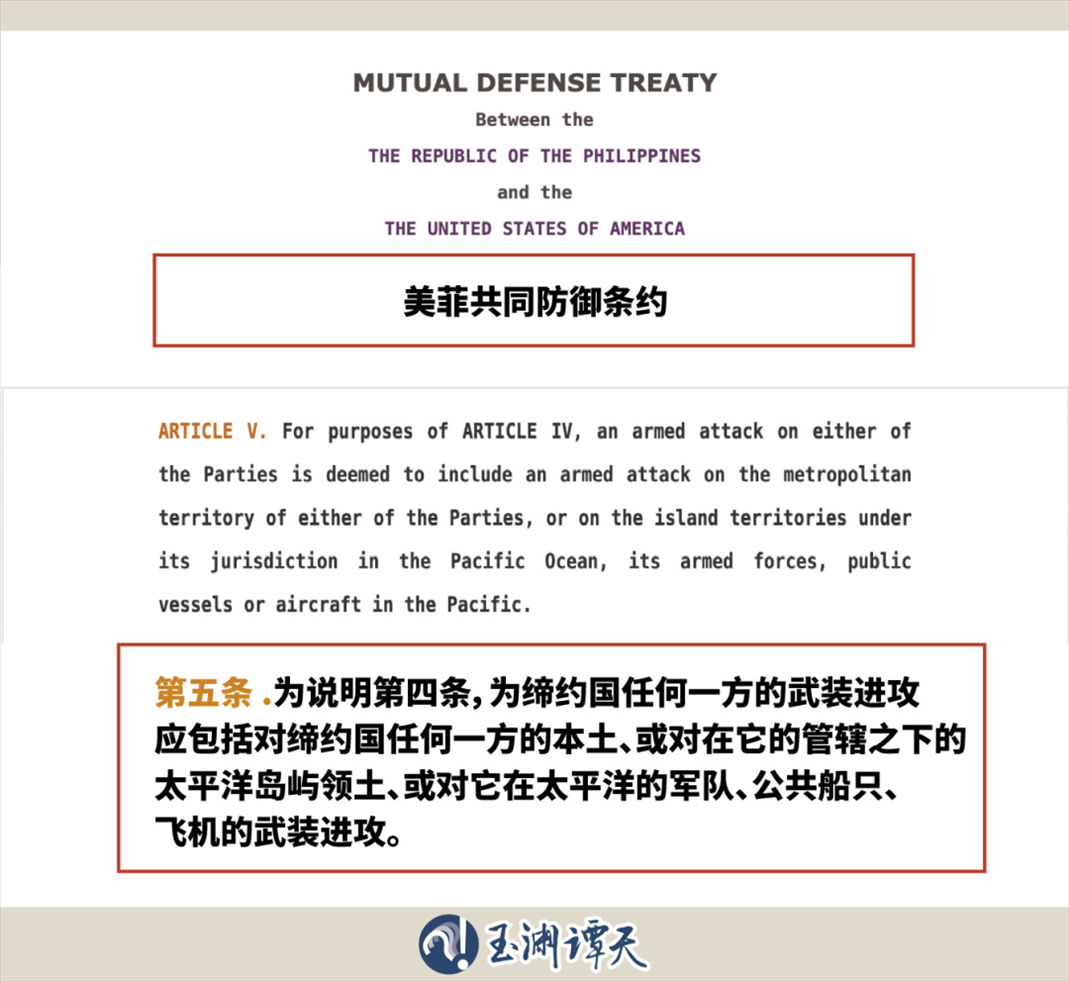 “……該條約延伸到在太平洋(包括南海任何地方)對菲律賓武裝部隊、公共船只或飛機(包括其海岸警衛(wèi)隊的船只或飛機)的武裝攻擊……”