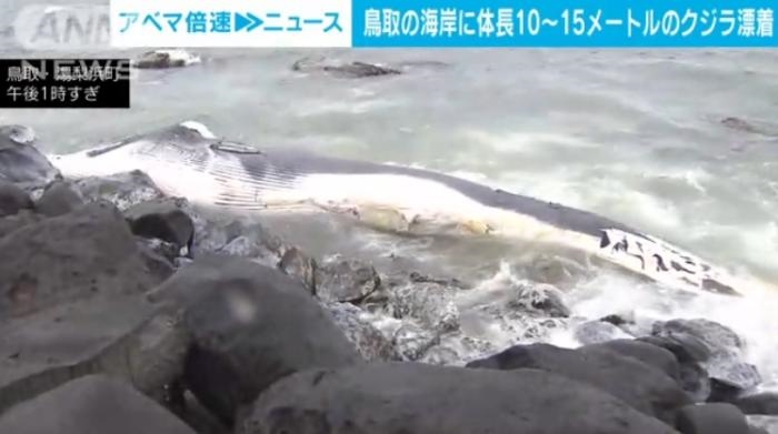 鳥(niǎo)取縣有關(guān)部門(mén)判斷這條鯨魚(yú)為塞鯨或布氏鯨,推斷已死亡很長(zhǎng)時(shí)間,尸體表面已經(jīng)開(kāi)始腐爛變色,當(dāng)?shù)卣趯?duì)處理方法進(jìn)行商討。