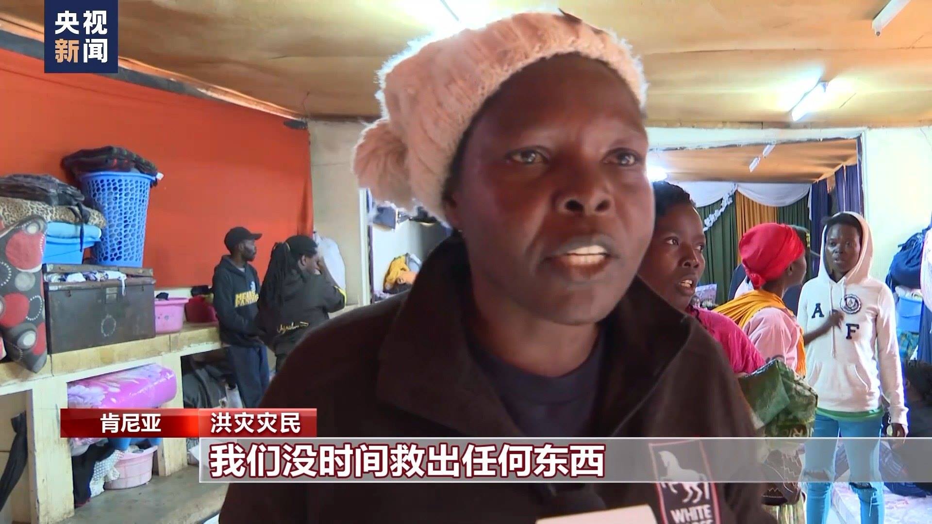 總臺(tái)記者 劉晨:這里是位于肯尼亞首都內(nèi)羅畢市中心馬薩雷貧民窟里的一所小學(xué),因?yàn)楹闉?zāi)失去住所的居民們被臨時(shí)安置在這里。由于暴雨影響,肯尼亞當(dāng)?shù)貙W(xué)校的開學(xué)時(shí)間從本周又向后推遲了一周。現(xiàn)在我身后這樣的教室已經(jīng)被改造成了臨時(shí)寢室,供災(zāi)民休息。政府送來了棉被和枕頭,每天也會(huì)定時(shí)為這里的難民提供食物。