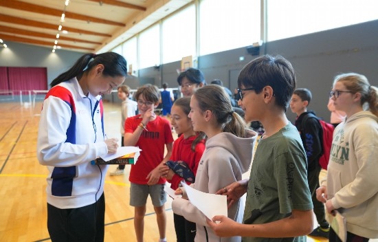 這是華東師大體育與健康學(xué)院院長(zhǎng)季瀏教授帶隊(duì)的羽毛球世界冠軍團(tuán)隊(duì)“與世界冠軍面對(duì)面——中法高校羽毛球友誼賽”活動(dòng)的第七場(chǎng)。此前,他們?cè)诎屠琛⒗锇旱鹊嘏c法國(guó)國(guó)家體育中心、巴黎-西岱大學(xué)以及里昂部分大中小學(xué)開(kāi)展了相關(guān)活動(dòng)。