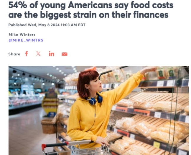 考慮到食品價(jià)格在過(guò)去四年里上漲了25%,而消費(fèi)者價(jià)格指數(shù)(cpi)追蹤的所有商品的漲幅為21%,因此食品價(jià)格對(duì)年輕人的沖擊最大或許并不奇怪。