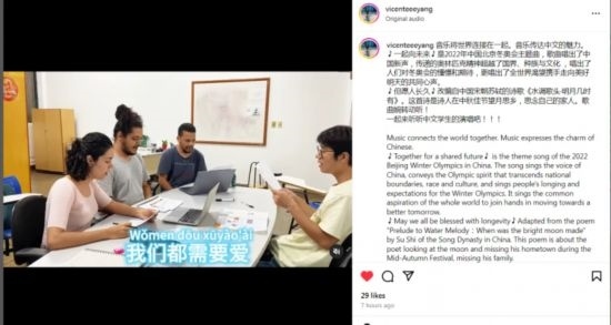 來(lái)自老撾的楊世群、菲律賓的黃玉潔、布隆迪的田曉慧和墨西哥的楊衍輝等老師,還分享了各種學(xué)習(xí)中文的有趣方法,例如情景演繹、唱歌學(xué)中文、跟讀練習(xí),獲得了網(wǎng)友們的一致好評(píng)。