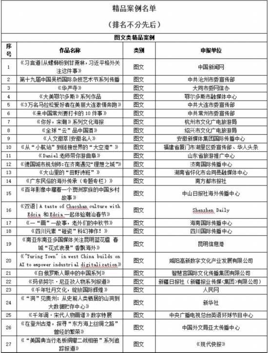 近日,“中國(guó)好故事”地域特色文化網(wǎng)絡(luò)國(guó)際傳播案例征集展播活動(dòng)評(píng)選結(jié)果正式發(fā)布,來(lái)自全國(guó)各?。▍^(qū)、市)的100部作品入選精品案例。