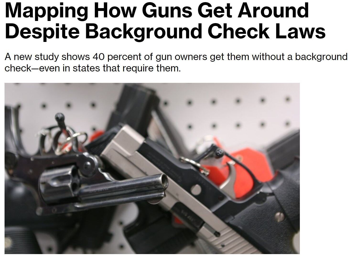 △彭博社報(bào)道:據(jù)統(tǒng)計(jì),美國(guó)至少有40%的購(gòu)槍者無(wú)需通過背景審查。